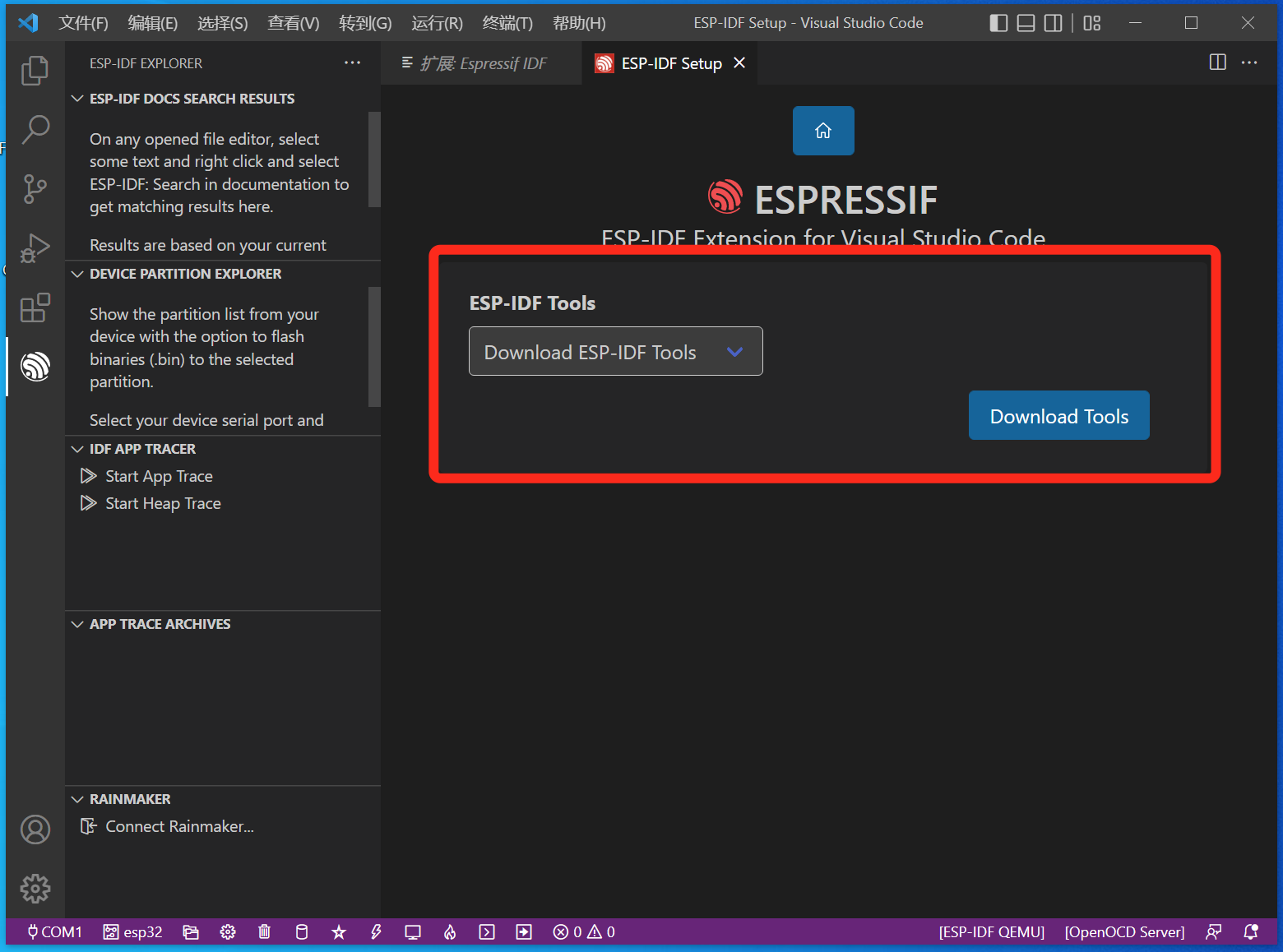 温馨提示:如果不出意外的话,这一步骤需要极大的耐心 接下来是下载"ESP-IDF Tools", 同样需要耐心等待。