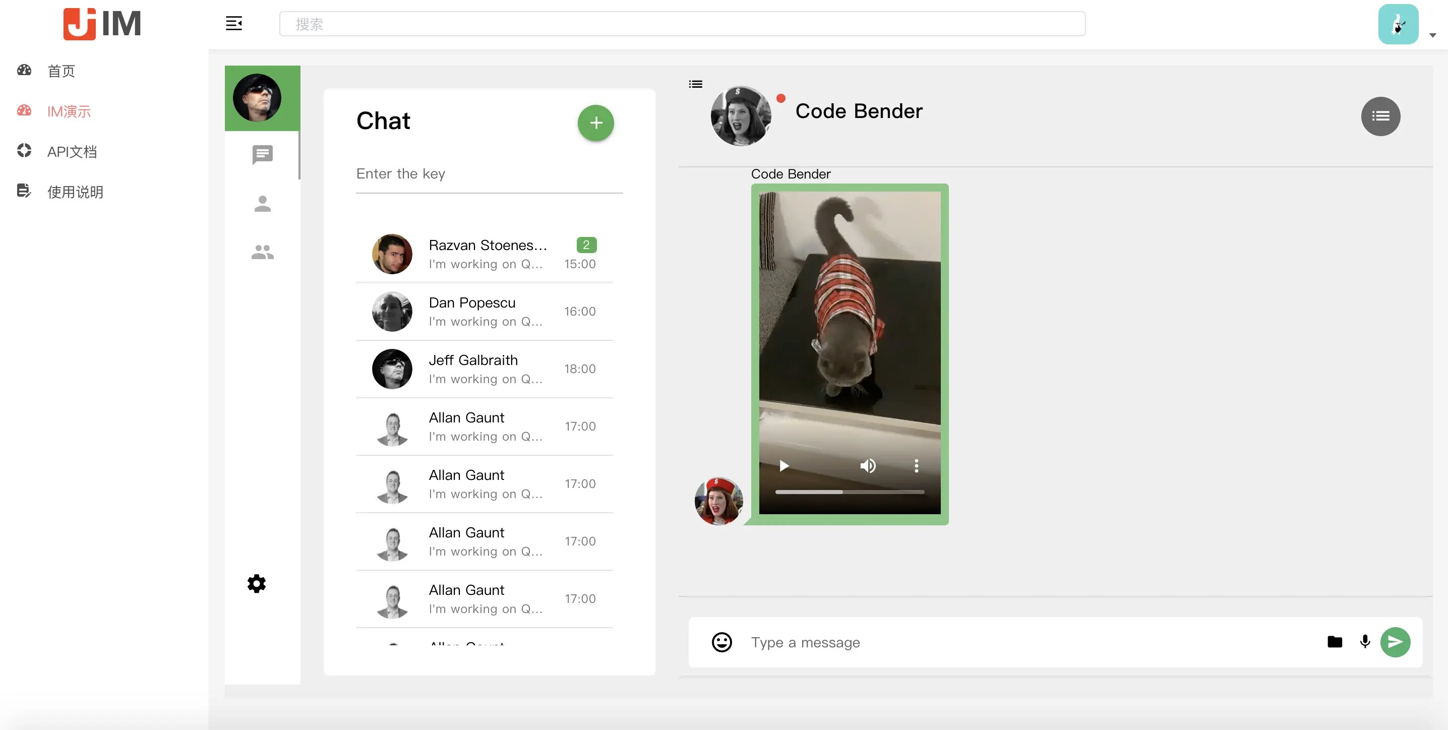 用JAVA语言,基于t-io开发的轻量、高性能、单机支持几十万至百万在线用户IM,主要目标降低即时通讯门槛,快速打造低成本接入在线IM系统,通过极简洁的消息格式就可以实现多端不同协议间的消息发送如内置(Http、Websocket、Tcp自定义IM协议)等,并提供通过http协议的api接口进行消息发送无需关心接收端属于什么协议,一个消息格式搞定一切!
