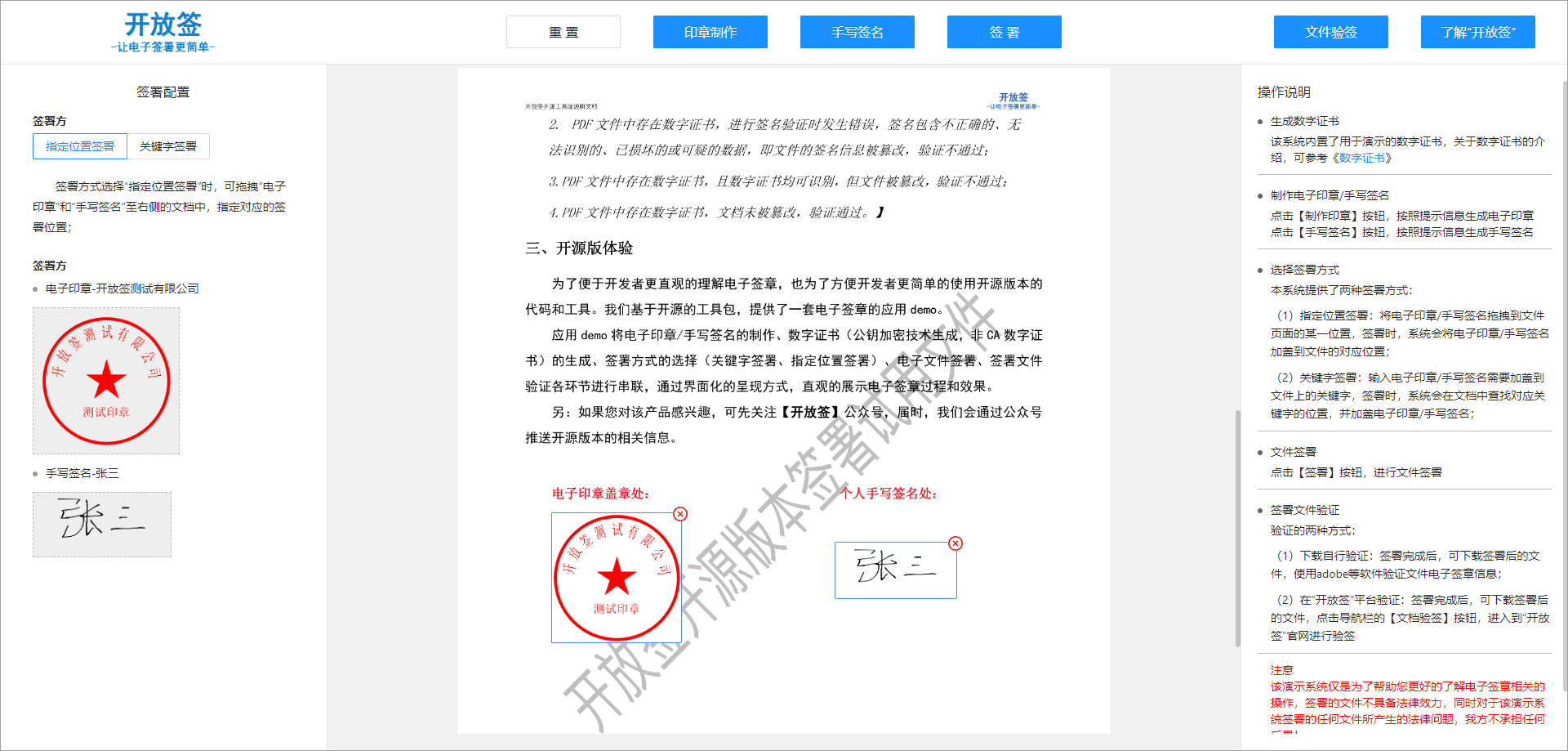 电子签章 电子合同工具版 开放签电子签章 电子合同开源工具版源代码