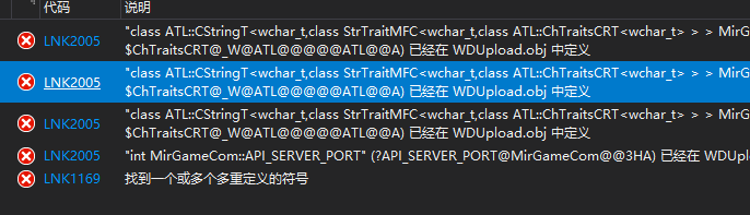 VC++ error LNK2005: "int MirGameCom::API_SERVER_PORT" (?API_SERVER_PORT@MirGameCom@@3HA) 已经在 WDUpload.obj 中定义