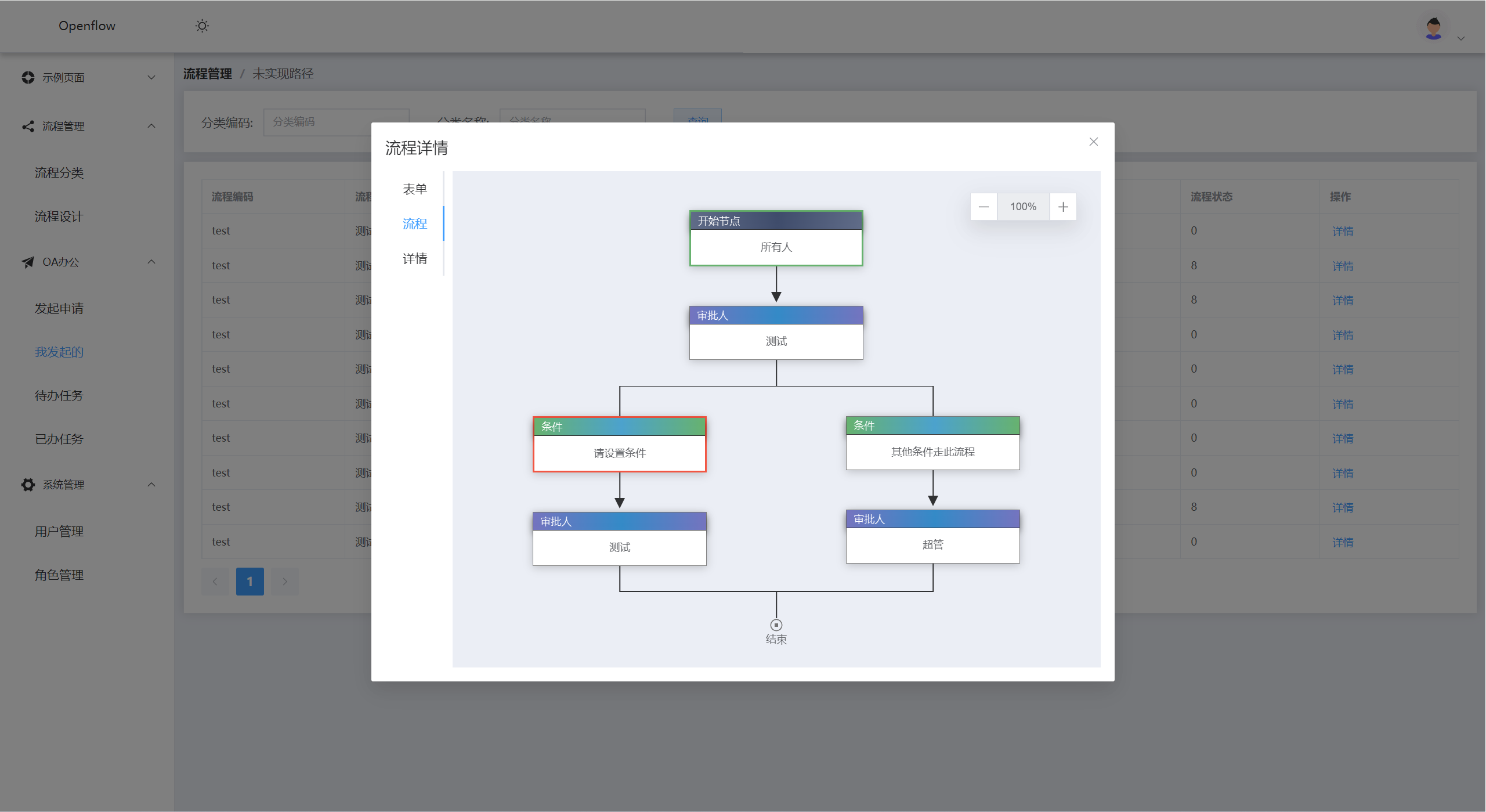 围绕 工作流功能, 实现 流程设计, oa审批, 系统管理 三大部分,从 0到1 , 部分界面借鉴优秀项目的布局