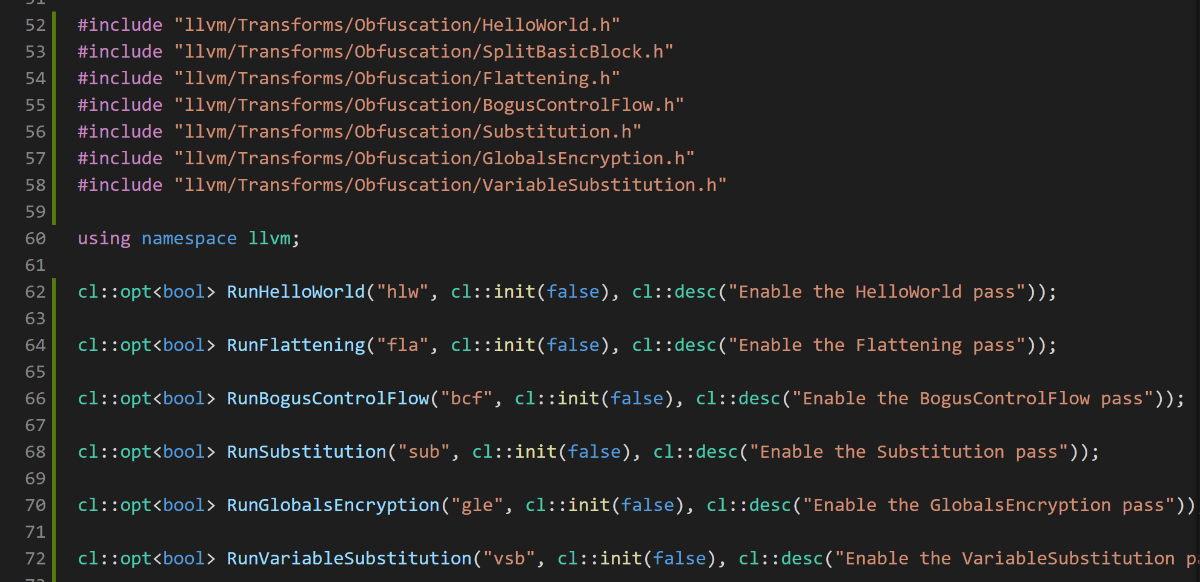 此时我们需要向toolchain/llvm-project/llvm/lib/Transforms/Obfuscation/中加入自己的代码: