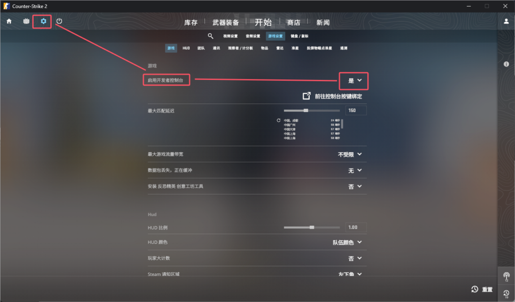 1.2调整控制台这里需要你在游戏设置中先启用控制台,如图点击左上角设置按钮,来到游戏设置将启用开发者控制台切换为是