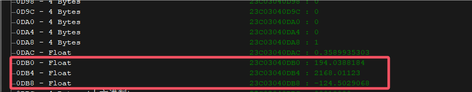 没有看到三个连续的Float坐标就换一个没有自己变化数值继续找):