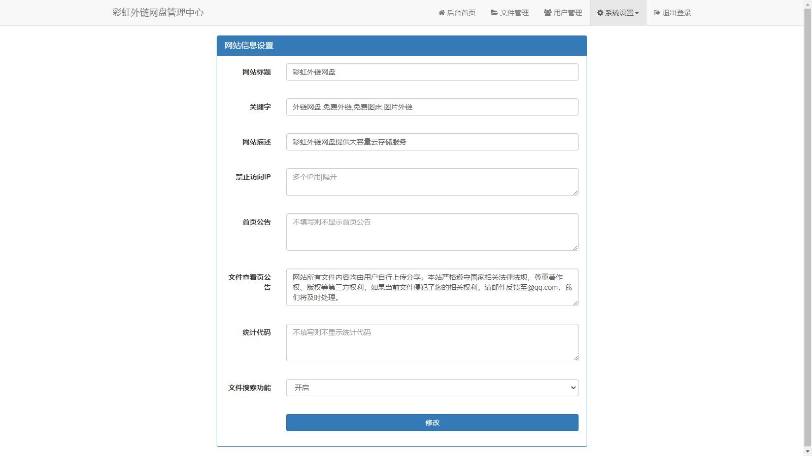 彩虹外链网盘,是一款PHP网盘与外链分享程序,支持所有格式文件的上传,
