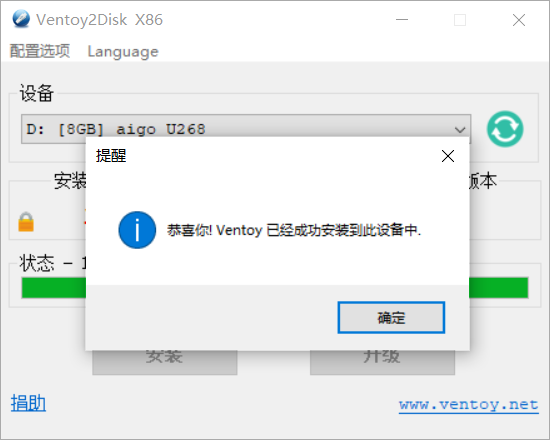1.运行Ventoy软件,设备选择需要安装的U盘