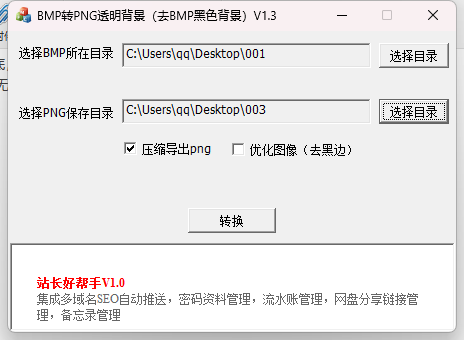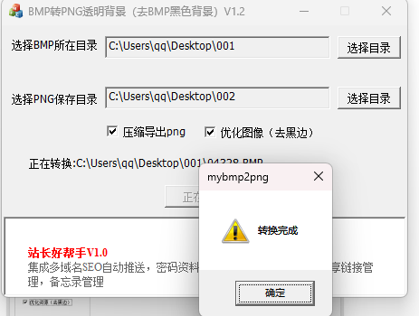批量BMP图片转为PNG透明图片,去掉BMP纯黑色背景,去黑底,去黑边,压缩导出png图片V1.3