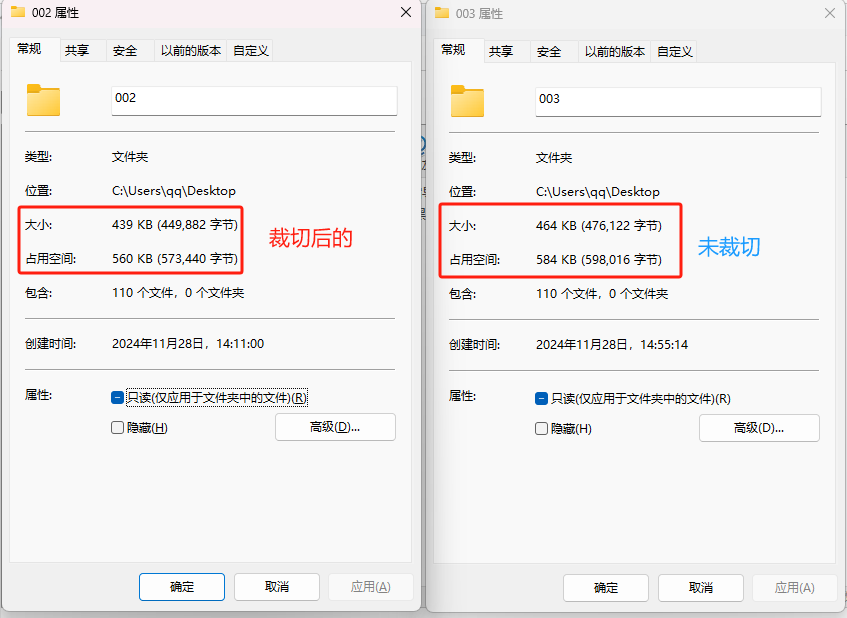 下面再来测试一下未优化图片与优化图片的战用空间情况: