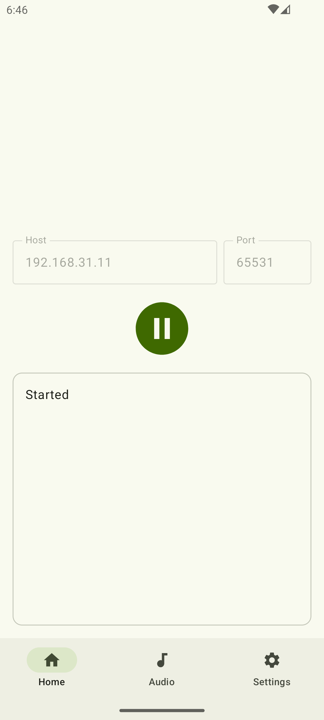 - 在计算机上打开 AudioShareServer.exe。default 参数可能效果很好。但是您可能仍然需要检查“主机”部分。通常是 LAN 地址,例如 .确保您的手机可以通过此 IP 地址连接您的计算机。然后单击“启动服务器”按钮。192.168.xxx.xxx