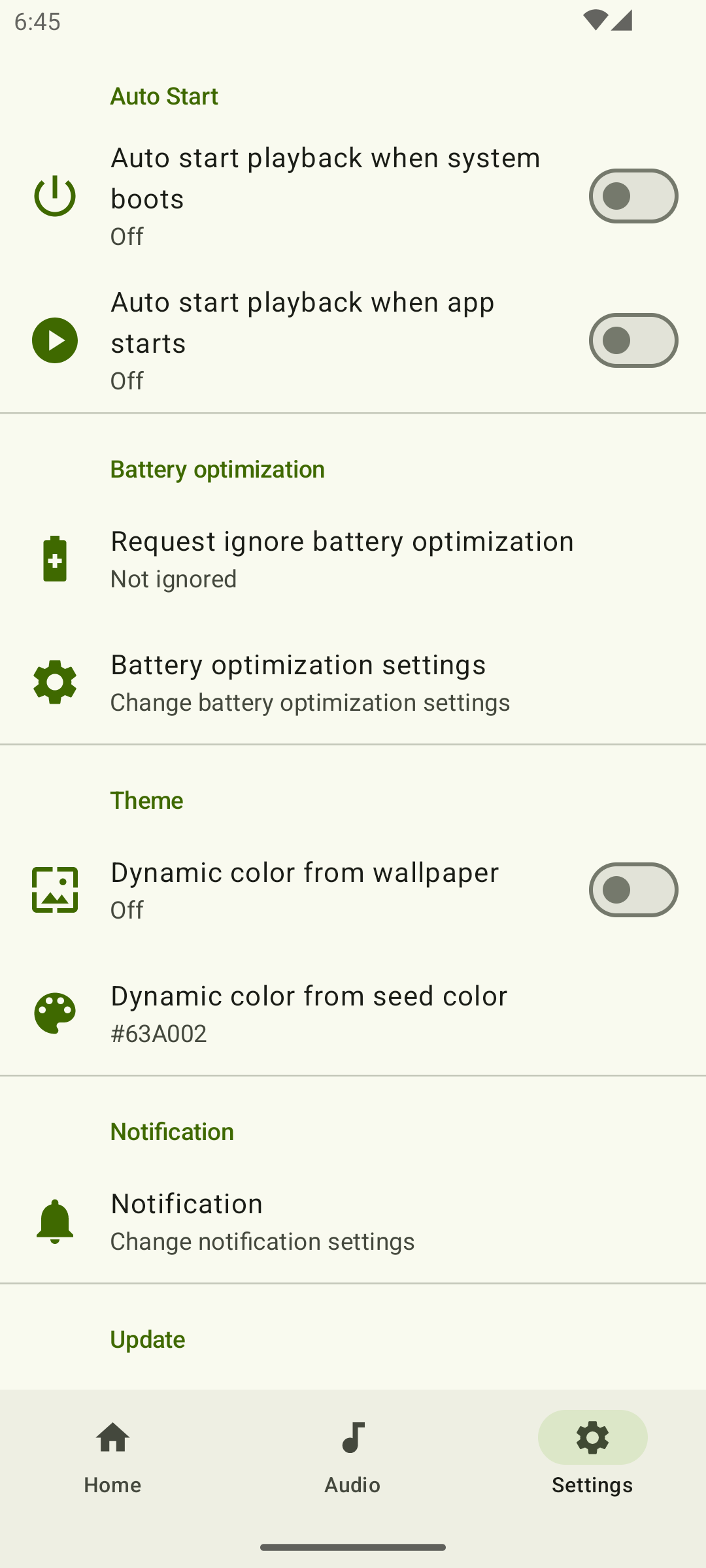 - Android 应用程序上的“Audio Volume”(音频音量)。