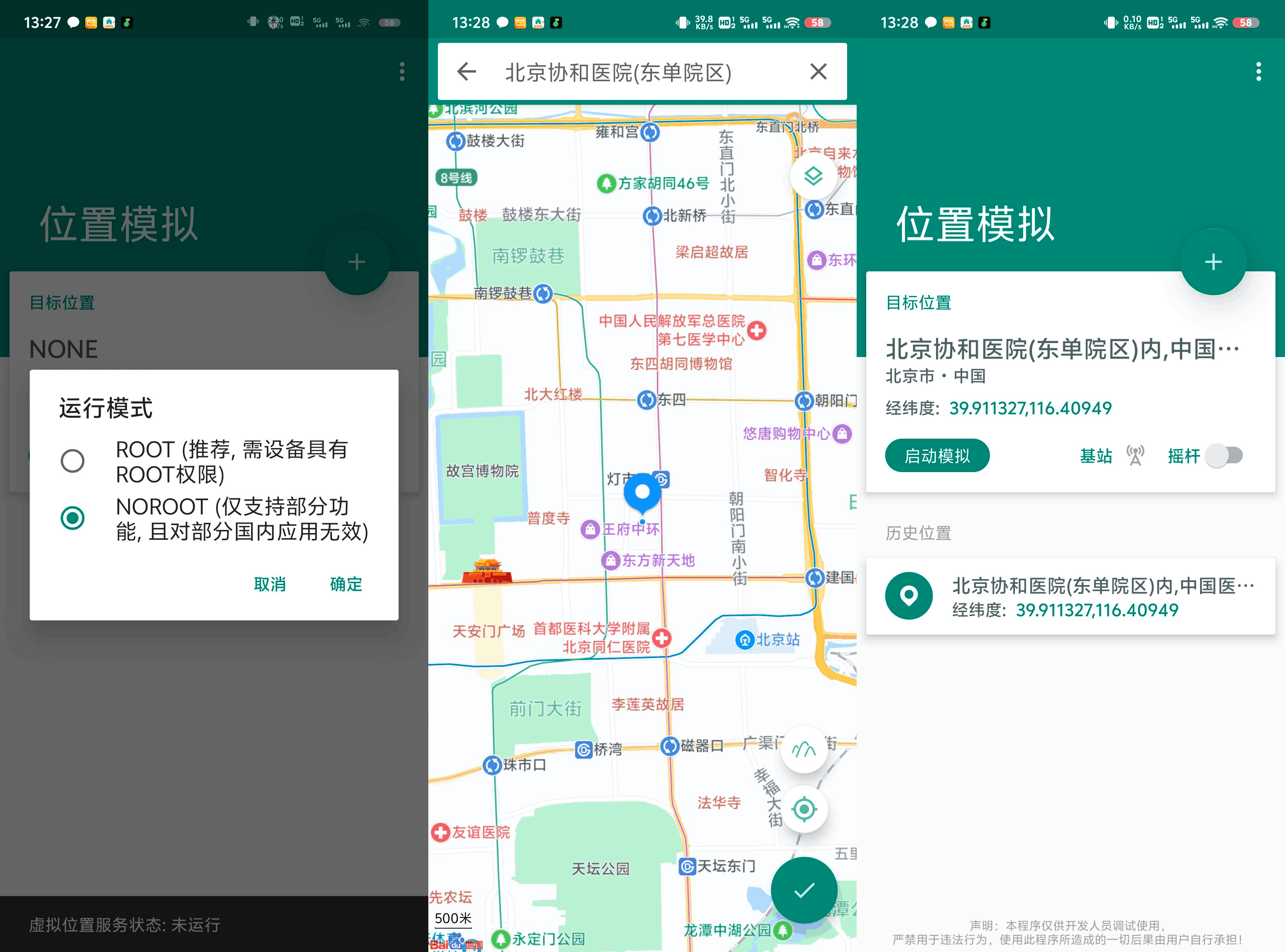 应用特色支持模拟多级位置移动速度:步行、跑步、骑车、驾车、飞机以及自定义 支持基站模拟,自动搜索目标位置附近的基站 支持路线模拟 支持步频模拟(也可模拟计步器步数,如:微信运动步数、支付宝步数等) 支持wifi模拟 支持独立模拟 支持GPS信号模拟 支持反检测 支持隐藏ROOT 应用功能以ROOT环境运行,不易被检测,模拟成功率高,当然也支持免ROOT运行 支持Android P/Q 支持以摇杆方式移动位置 支持根据当前手机朝向动态调整位置移动方向 支持位置更新频率设置(根据应用场景调整,比如微信建议设置为100毫秒,部分游戏建议设置为2000毫秒) 支持位置快速切换 支持保存当前位置,便于快速返回 更适合游戏场景