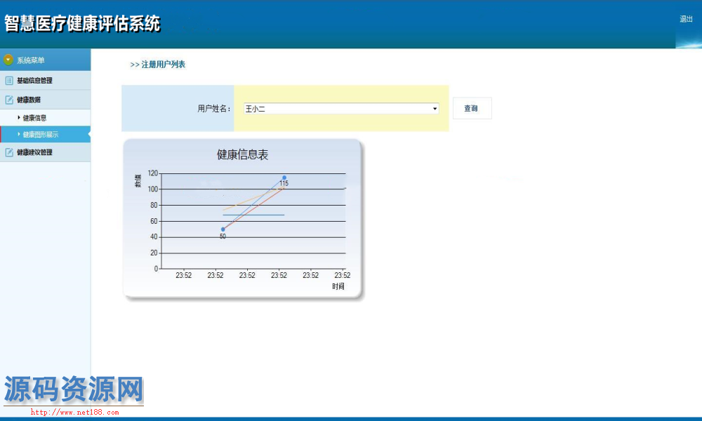 用户后台:1、个人信息管理  2、健康数据:健康监测、测试数据
