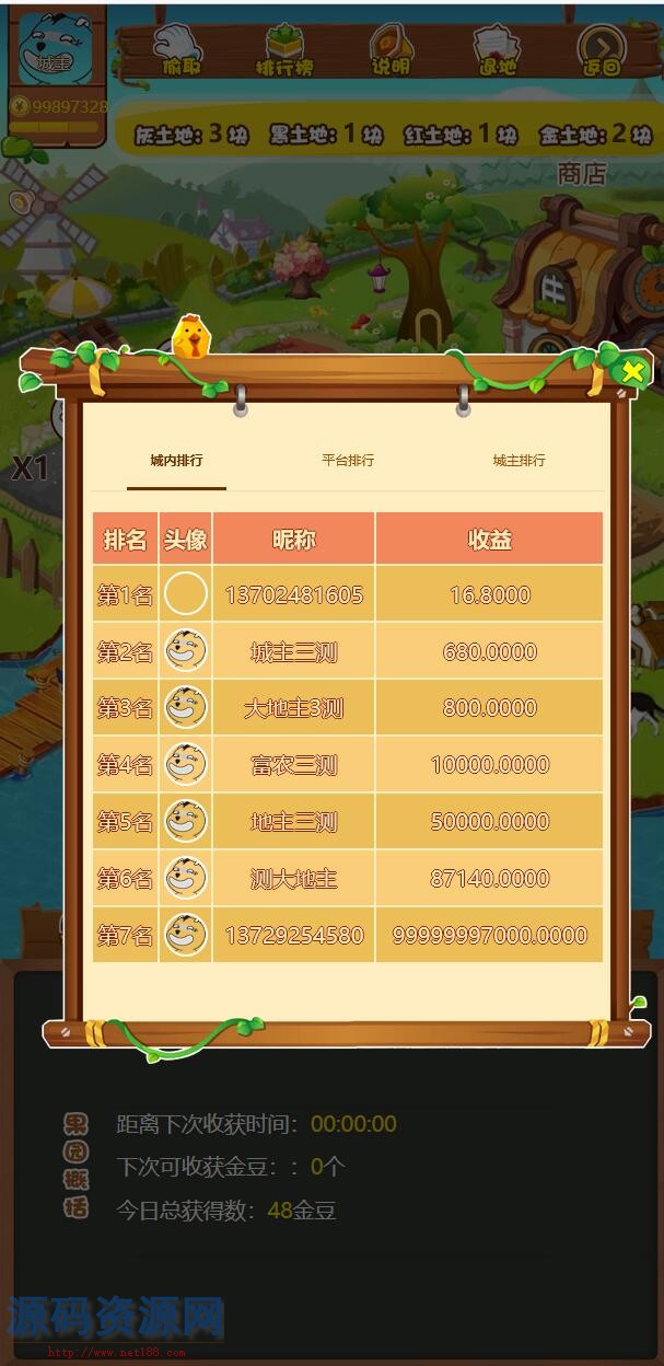 黄金庄园是基于区块链的游戏。金豆为游戏通行货币。 本游戏不涉及现金交易,所有资产均为区块链数字资产。 资产价值由区块链玩家共识产生。请勿过度投机。 可自定义会员等级,每个等级可自定义设置直推奖比例; 自定义添加土地和升级条件;支持实名认证、提现、退地;农场支持偷取功能,支持偷取次数设置 此源码是在咸鱼花了588买来的完美无错版,亲测可用,防止泛滥,暂时不开启免费下载 内含和搭建说明和后台用户名和密码 特此声明:源码来自网络分享,本店所售程序只供娱乐模拟测试研究,不得使用于非法用途,不得违反国家法律,否则后果自负!购买以后用作他用附带的一切法律责任后果都由购买者承担于本站无任何关系!