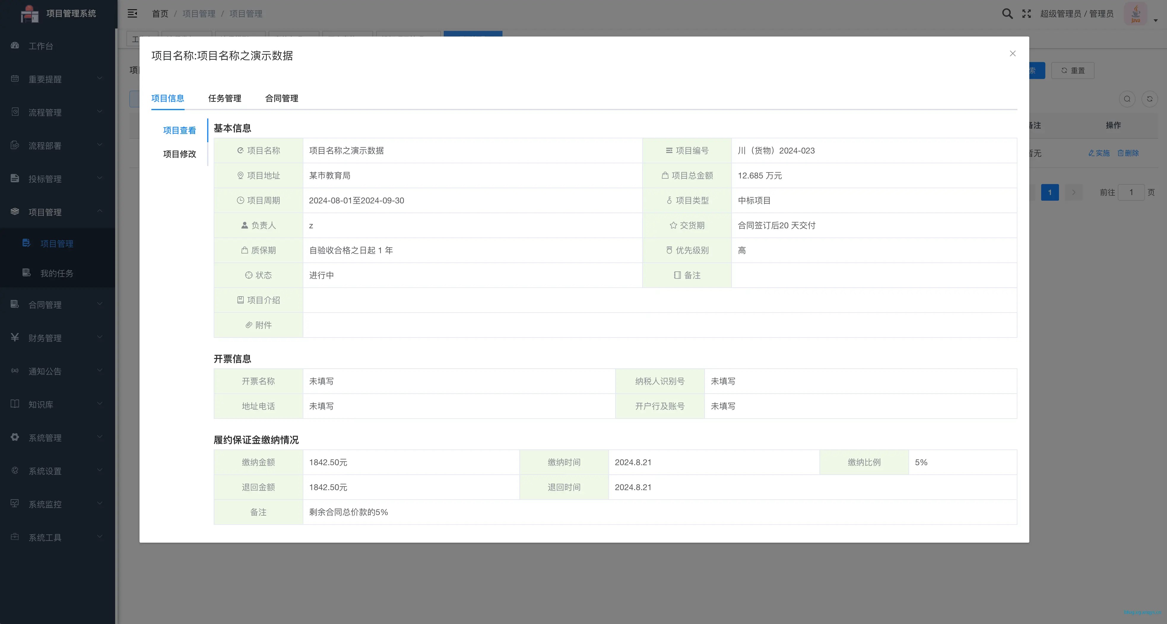 - 合同管理:合同在实际场景中分两部分,一是关联项目合同信息,二是除项目合同外还有日常采购合同作为单独信息管理