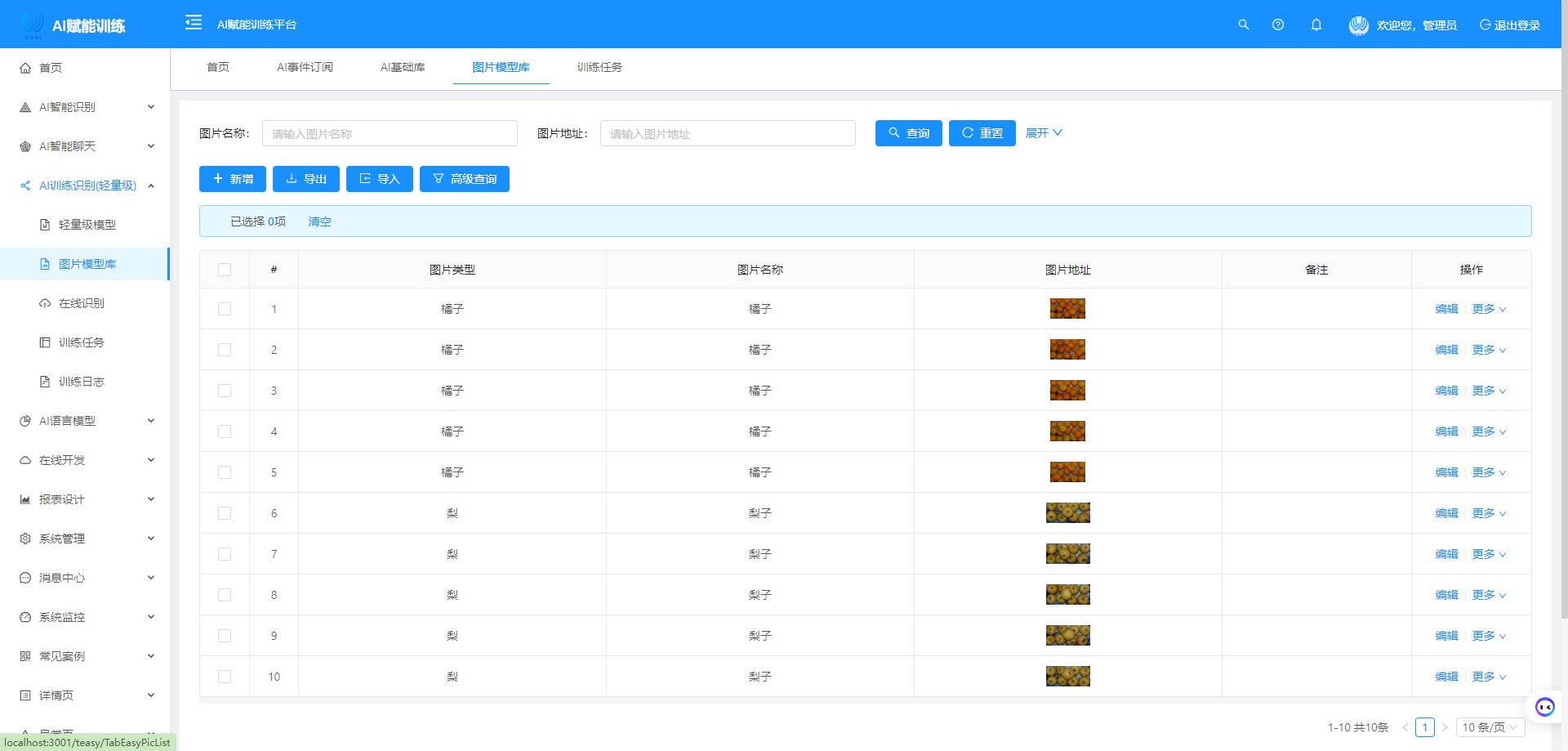 下载即可使用springboot+vue+mysql 支持国产化数据库 配置内容不再详细赘述 如果java 薄弱建议先学习java 再来使用 前端VUE! 新功能截图和功能介绍配置在线训练&标注内容已经上线开源 支持windwos/linux 国产化服务器部署模型列表