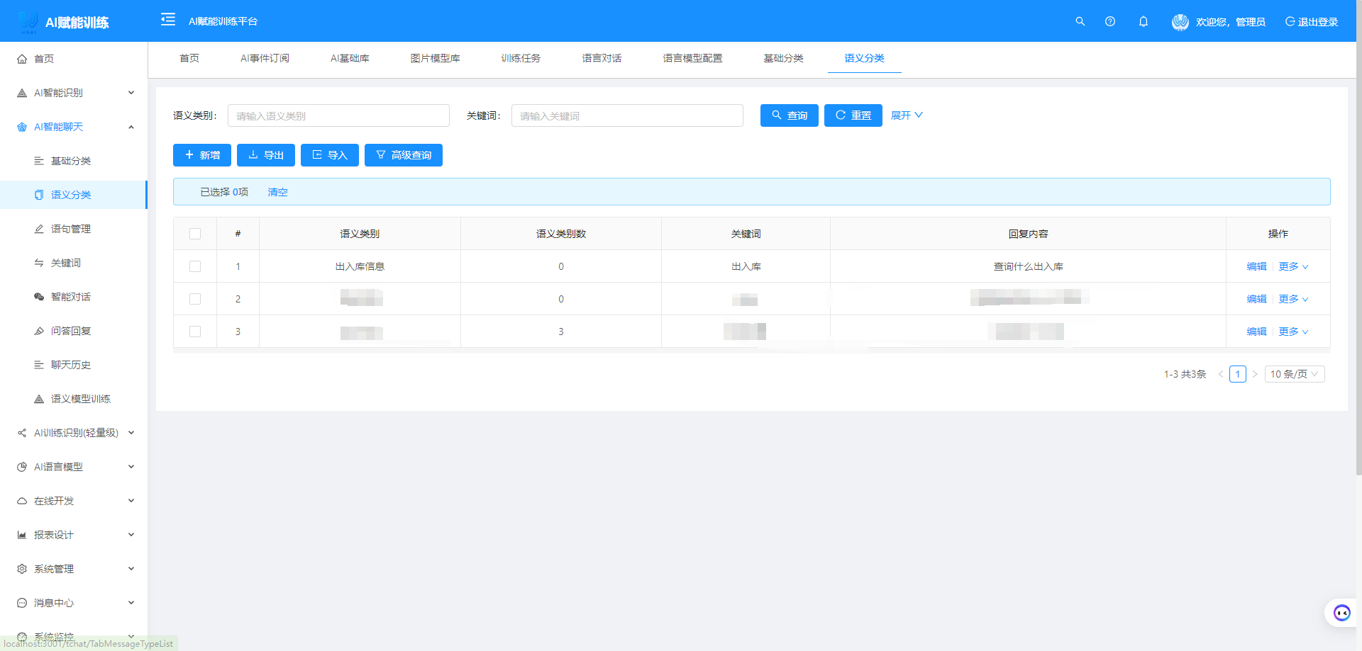 轻量级智能聊天这个轻量级主要是使用的easyui内核 @easyAi轻量级内核地址 他们有自己的内容训练内存消耗少训练时间短面对特定识别内容效率很高 由于时间有限暂未完全接入需要的同学可自主继续接入 基础分类