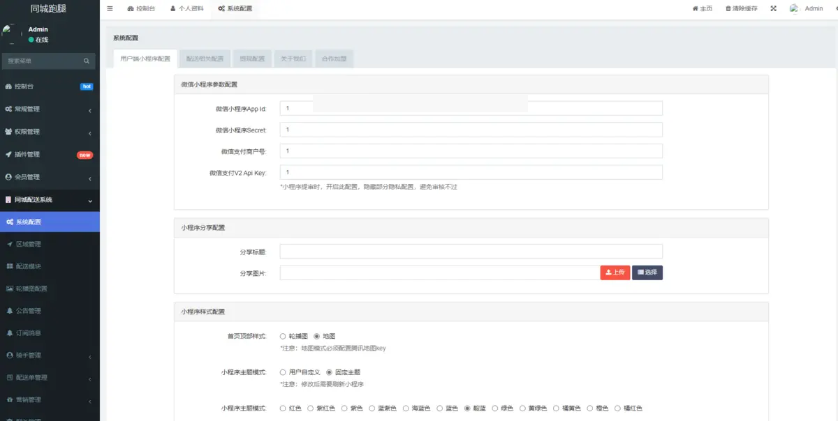 【全开源】跑腿小程序/智能派单/系统派单/同城配送/校园跑腿/预约取件/用户端+骑手端 基于Fastadmin+ThinkPHP和Uniapp开发的优创同城跑腿系统,支持帮取、帮送模式,包含用户端、骑手端、运营后台。 支持一键接单, 为跑腿团队提供技术解决方案,无加密源码,可私有化部署。 1.计价规则:支持按距离、重量等计价规则,自动计算费用 2.临时加价:针对夜间、天气等特殊场景可临时调整价格 3.预约取件:可设置预约时间,用户可提前下单 4.跑腿小费:可设置骑手小费,提高订单接单率 5.物品保价:可按比例计算保价费用 6.地图选点:地图精确选点,计算距离,导航规划路线 7.一键接单:弹窗加语音提醒新订单,避免漏单 8.主动接单:接单大厅按照距离显示待抢订单 9.自由开工:可一键开启/关闭听单 10.系统派单:系统可灵活设置接单模式/派单模式 11.智能派单:根据骑手距离、送货地址、等级智能推送派单骑手 12.兼职/全职:兼职骑手可获得跑腿佣金