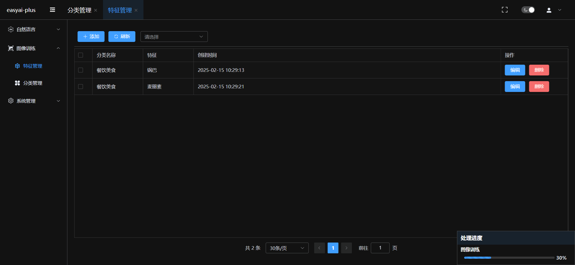 功能说明- 图像训练-图特征管理:用于管理图片的标注信息