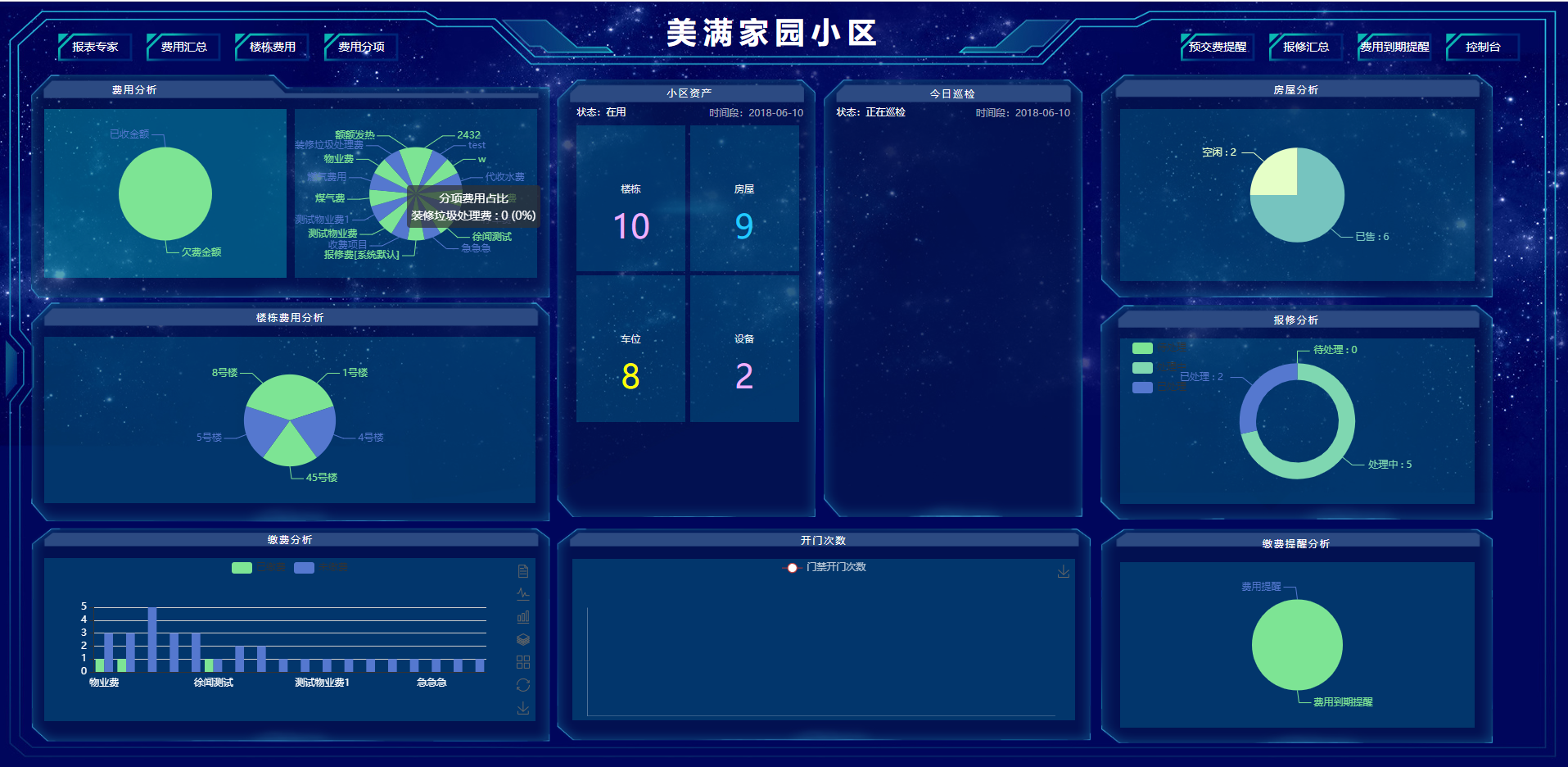 小区物业管理系统包含收费+报表,报修,门禁道闸,线上缴费,社区商圈,巡检,公众号欠费推送和公告微信推送功能,
