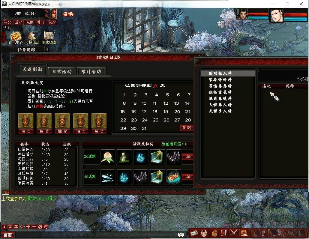 继上次发布的8.5有点小问题,这次8.6最终版都修了~~~~~注册码:8888~~~~ PS:单机玩家可以直接打开服务端启动~无需设置管理~默认GM工具直接登录~~接触GM权限不足~