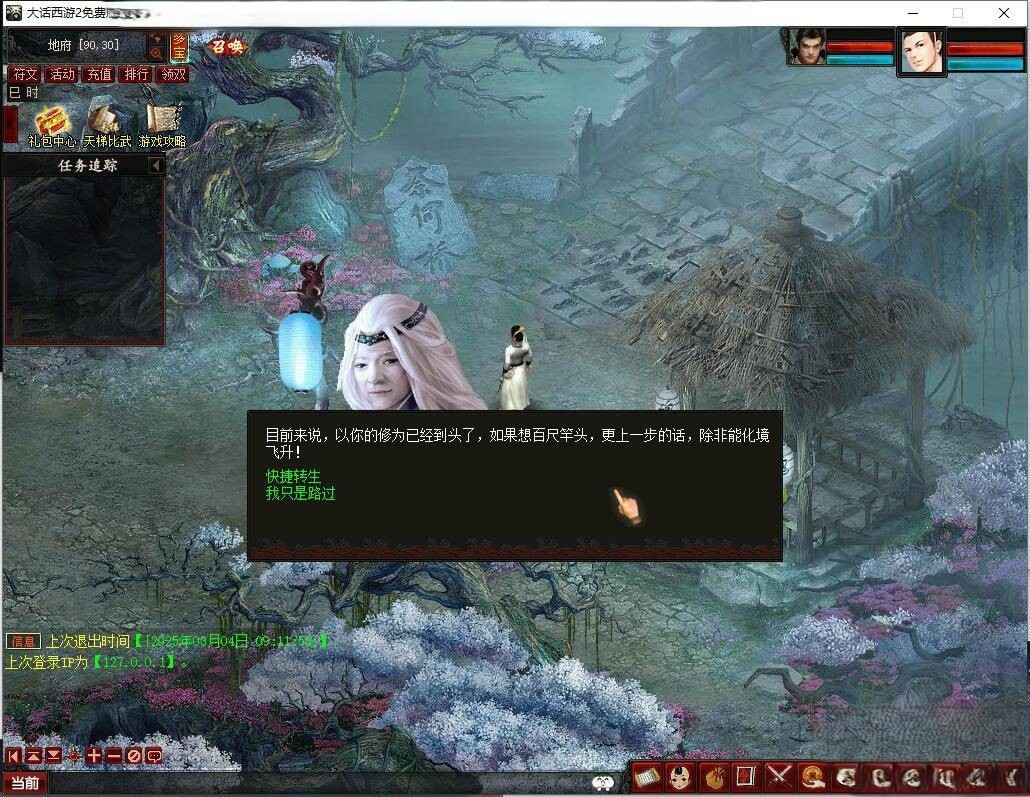 人物转生找地府孟婆接(需要人物102级 满技能 满称谓)