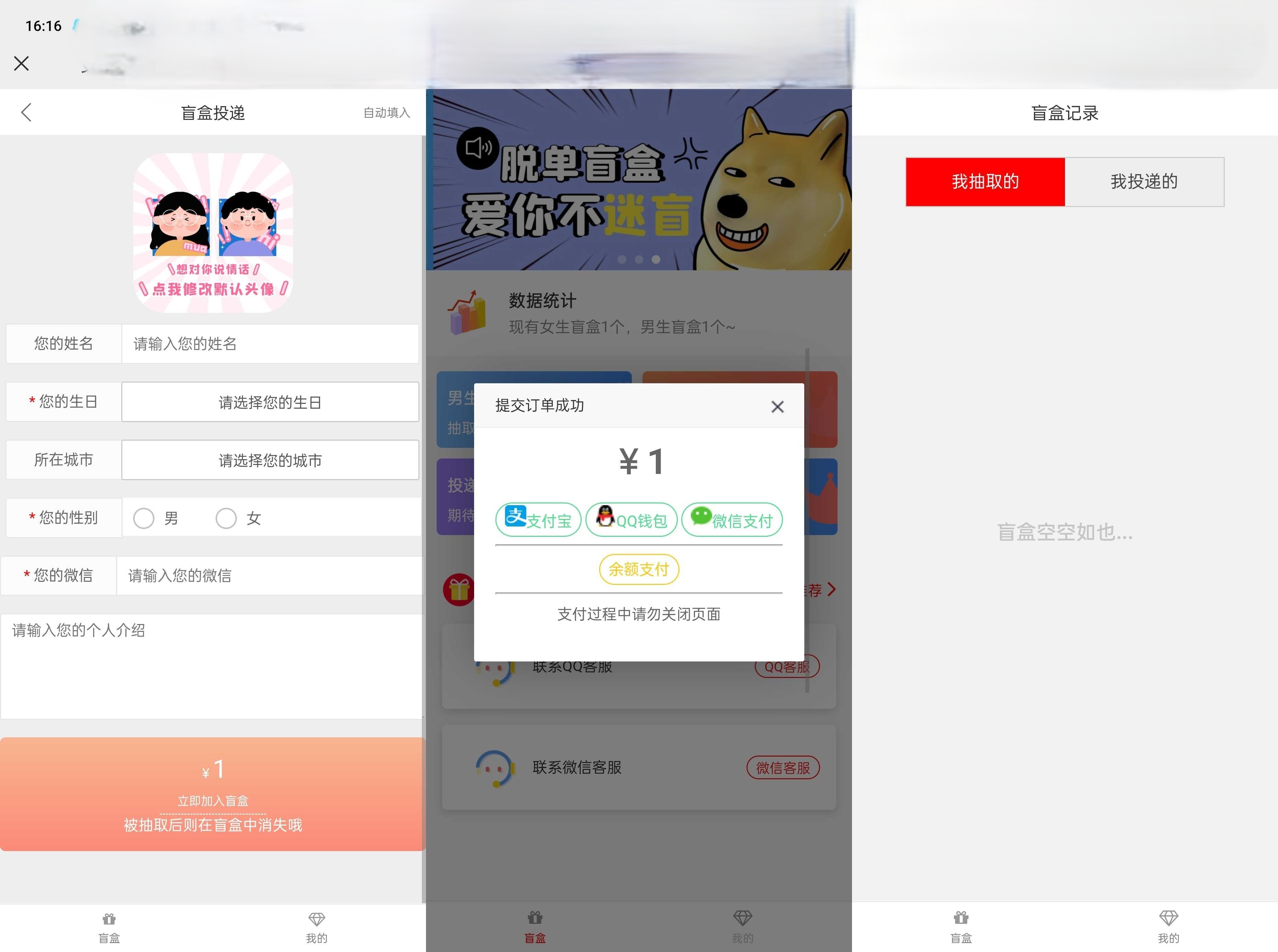 最新PHP开发的交友盲盒系统源码,免微信公众号,此款一元抽纸条盲盒交友源码已对接易支付,无需商户号,再也不用担心商户被封了。免公众号网页版盲盒源码,不用再去花300块认证服务号啦,盲盒交友持续火爆中~~~