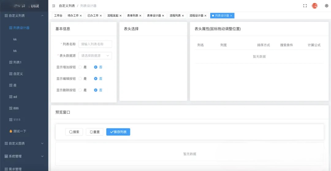 - 自定义列表:数据表格设计器。