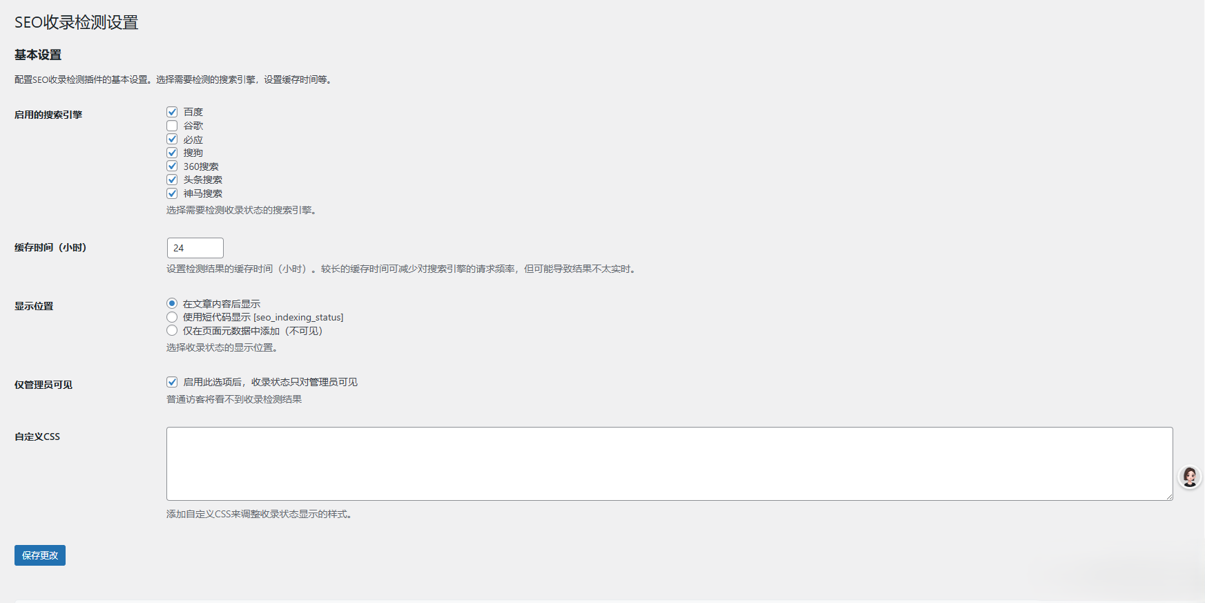 1. 在WordPress后台导航至”设置” > “SEO收录检测”