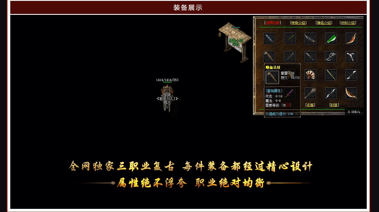 【版本介绍】 :战火沉默三职业,长期稳定开区,全网独家,正版授权