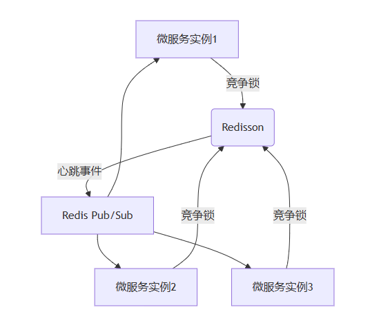 在Spring Cloud微服务架构中,基于Redisson实现分布式调度任务的选主和心跳监听,可以通过以下完整方案实现。该方案结合了Redisson的分布式锁和发布/订阅功能,确保高可靠性和实时性: