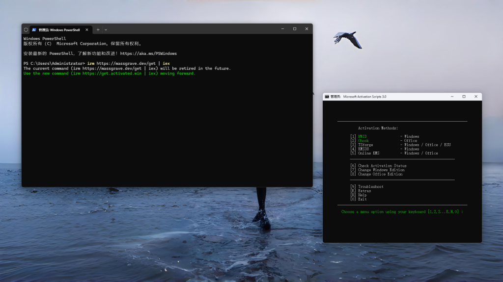执行脚本后,在弹出的 Microsoft Activation Scripts 脚本中,选择对应的激活选项即可执行激活,PowerShell 窗口将显示激活过程的进度。请耐心等待,不要中断脚本的执行。一旦激活完成,你将看到相应的成功消息或提示。