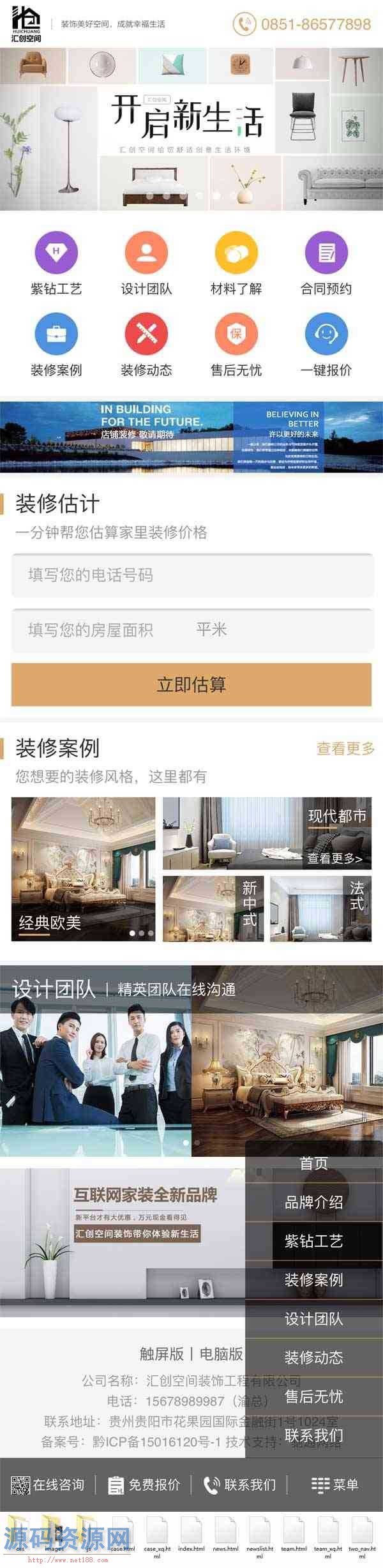 装修设计公司企业通用手机html模板移动端 移动端装修设计公司企业手机官网通用模板。 适合装修、装饰类企业使用,移动端装修网站, 移动端装饰网站。主要有品牌介绍、紫钻工艺、 装修案例、设计团队、装修动态、联系我们等 总共8个html页面。