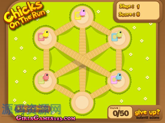 色彩斑斓的彩虹小鸡,长得非常可爱哦,什么颜色的鸡只吃那种颜色的米,现在是错位的,你要想办法让每只小鸡都吃到自己喜欢吃的米! 鼠标操作,点击小鸡去空位,通过不断的换位,让小鸡吃到米,每关有限制的换位数,超过就输了~试下你能否喂好这些可爱的小鸡!