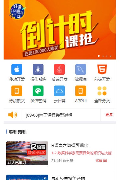 3、可在后台推荐板块里设置手机端首页的课程样式