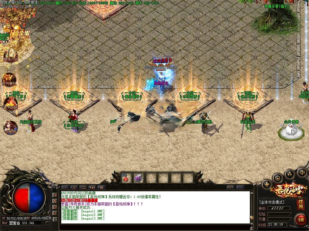 关于触发]:高级地图所有怪物都有几率触发奖励(元宝,经验,神秘地图,怪物切割者,灵符等等奖励) [装备保值]:装备EMB回收: [官方永久回收]处进行回收详细可以在游戏内查看,装备保值,永久回收) [装备血祭]:斗笠盾牌特戒时装可以在冰雪z城装备创世之炎[血祭] (获得攻击百分比). [怪物爆率]:本服所有爆率全部开放,绝对无任何不爆,假爆率现象,爆率较高,真正的让利玩家! [爵位捐献]:土豪玩家可以在t城右下角抢爵位捐献第一名奖 励,独享BOSS地图: 100-100点攻击力 [攻沙奖励]:奖励沙城捐献IPC查询,胜利方860,失败方*40 [攻沙奖励]: 12天一个战区.每天新区海里MB奖励沙城捐献MPC查询