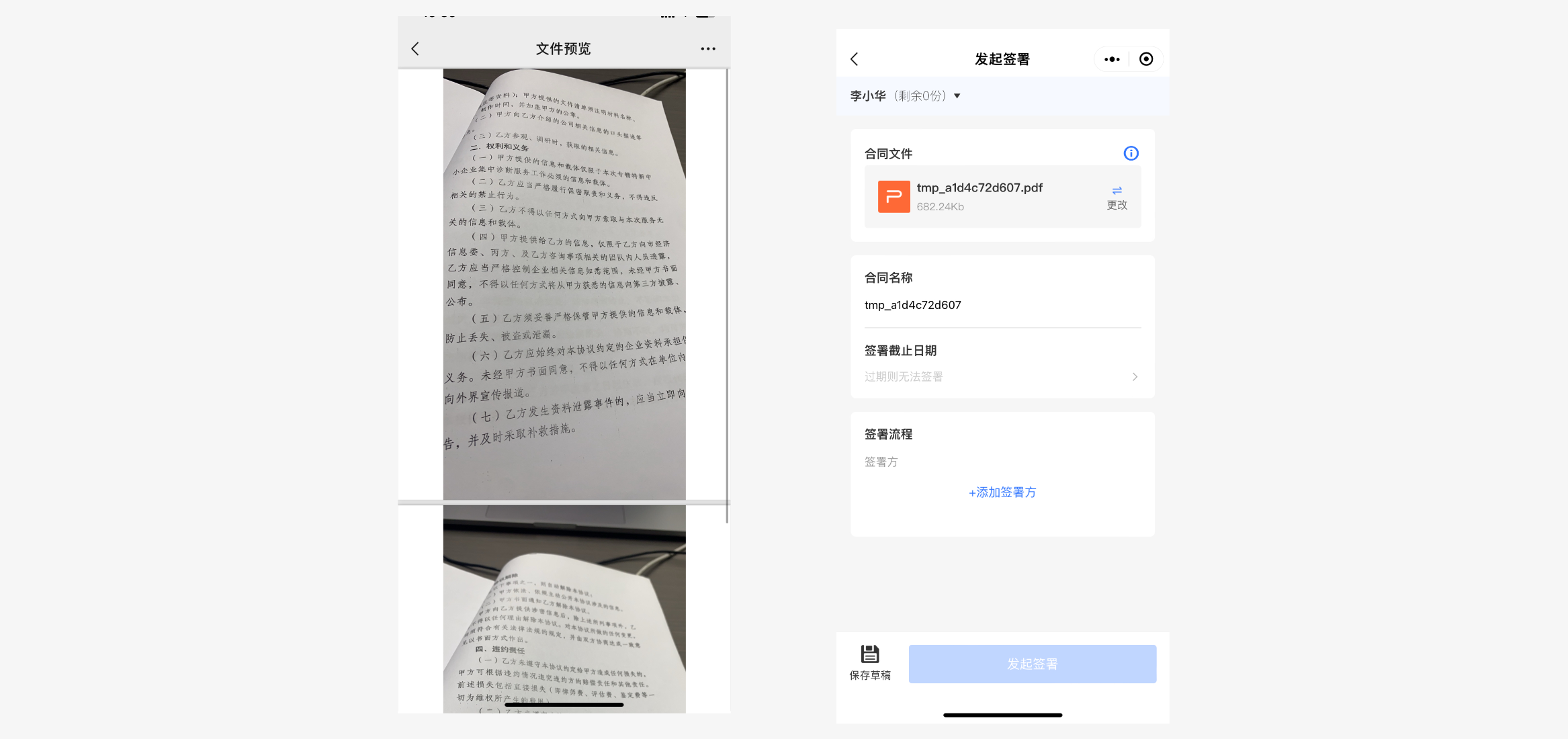 在未签署合同的时候,还可以支持临时合同文件的管理和上传