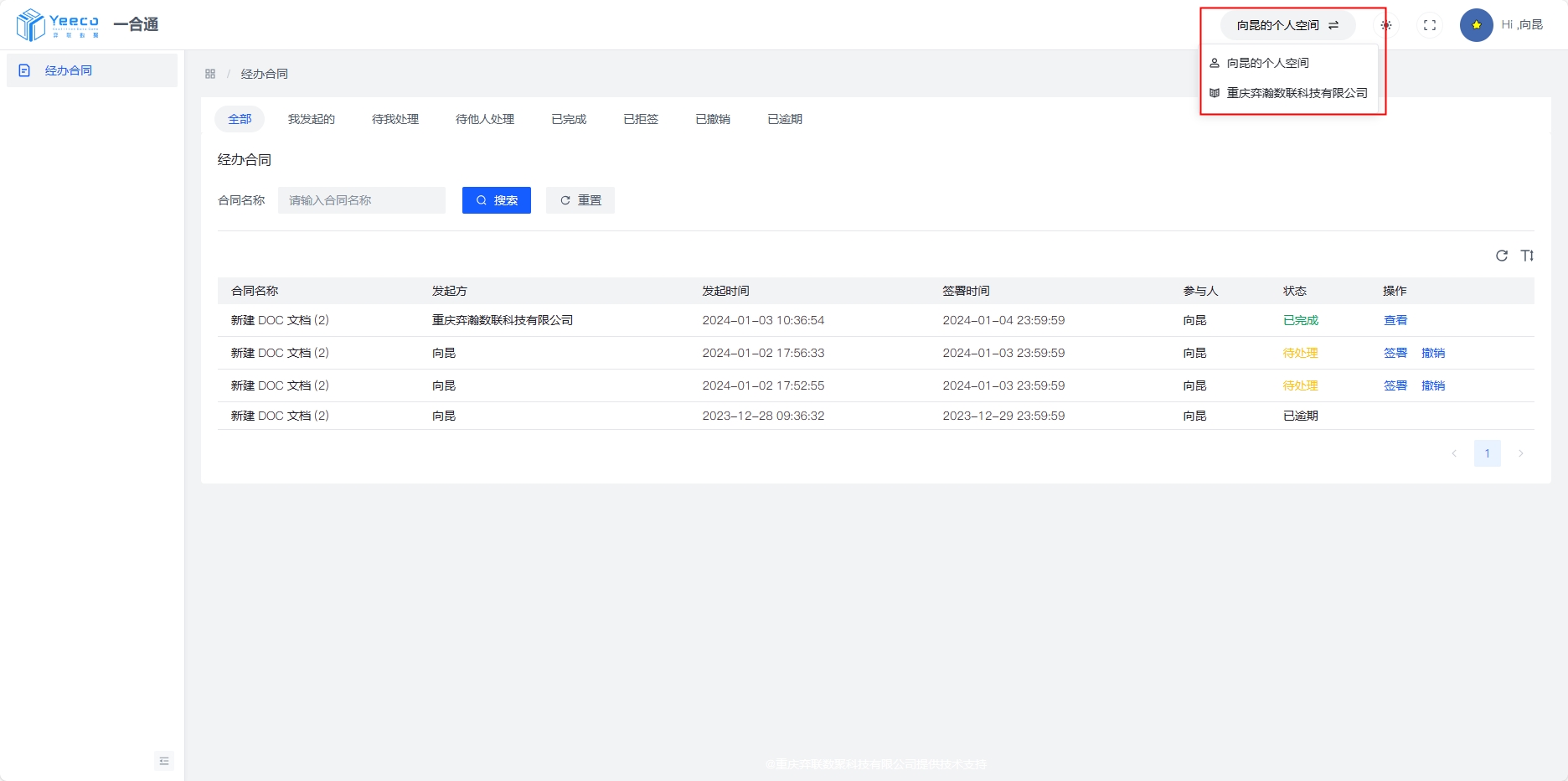 用户端(Web端)Web 用户端,可以在后台对自己的合同进行相应的签署和查看