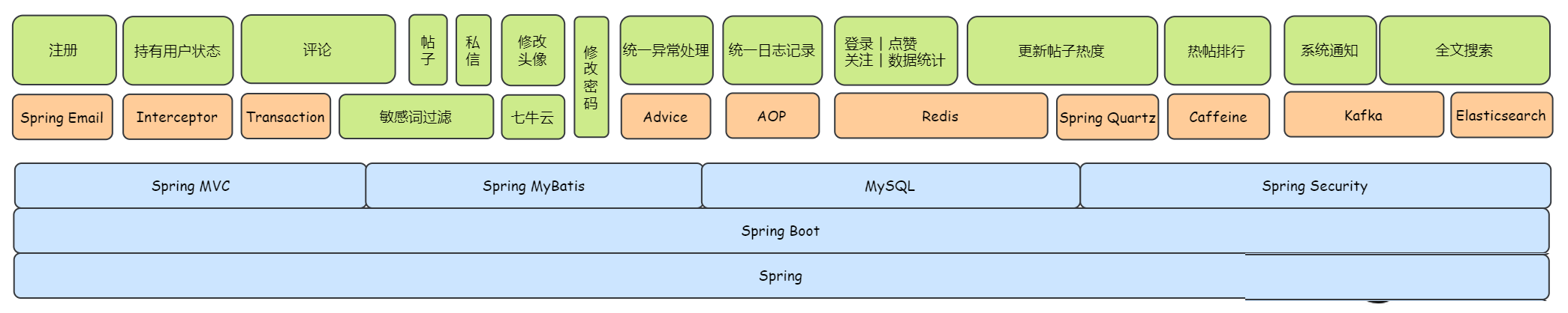 一、项目简介开源社区系统:基于 SpringBoot + MyBatis + MySQL + Redis + Kafka + Elasticsearch + Spring Security + ... 并提供详细的开发文档和配套教程。包含帖子、评论、私信、系统通知、点赞、关注、搜索、用户设置、数据统计等模块。 二、功能概述是一套前后端不分离的开源社区系统,基于目前主流 Java Web 技术栈(SpringBoot + MyBatis + MySQL + Redis + Kafka + Elasticsearch + Spring Security + ...),并提供详细的开发文档和配套教程。包含帖子、评论、私信、系统通知、点赞、关注、搜索、用户设置、数据统计等模块。 功能列表