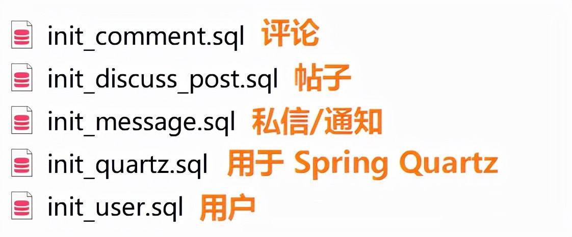 另外,还需要事件建好数据库 greatecommunity,然后依次运行项目 sql 文件夹下的这几个 sql 文件建立数据库表: