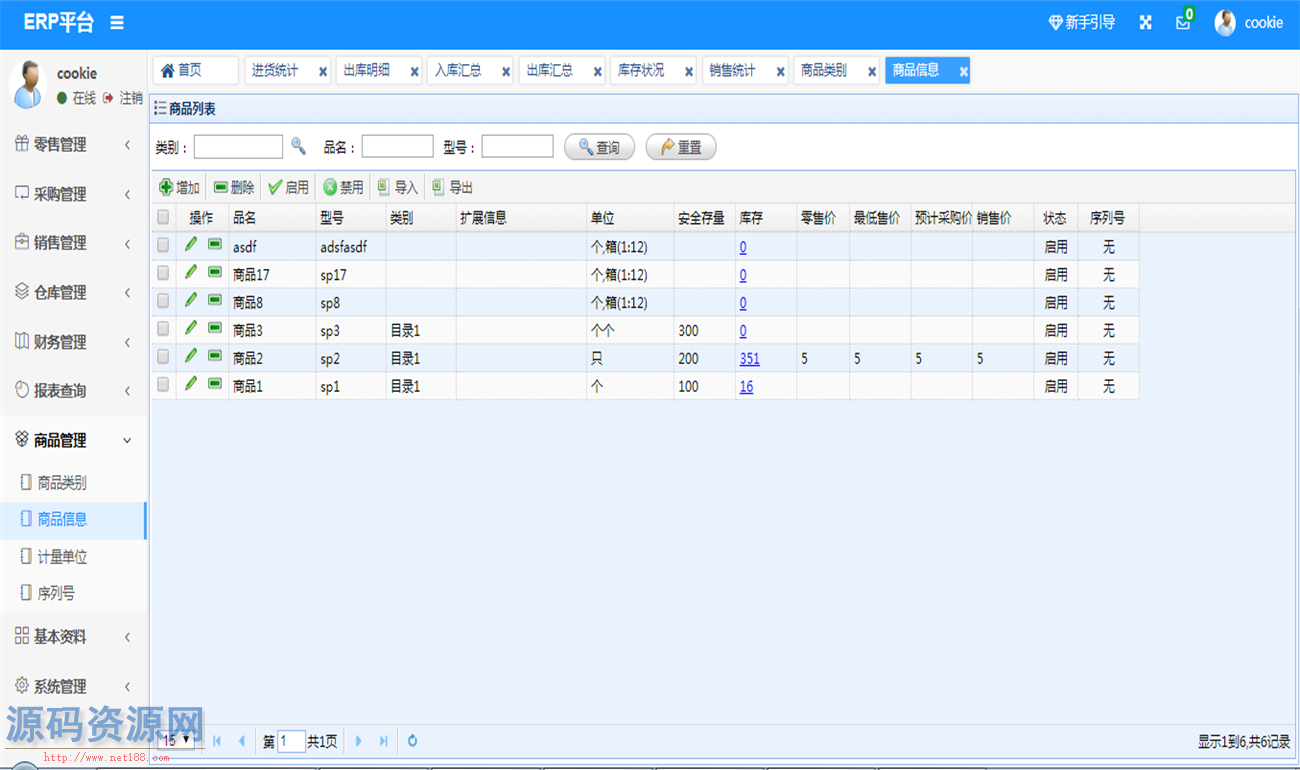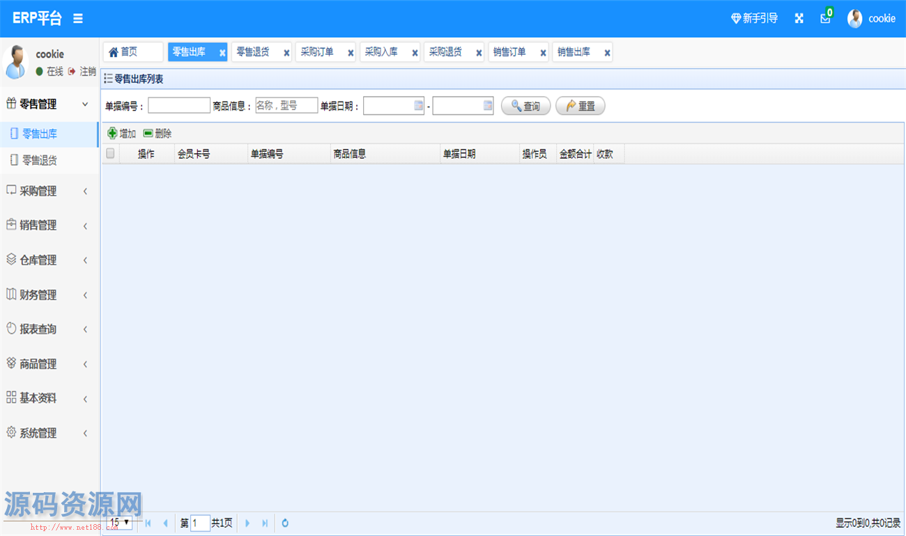 主要模块:零售管理、采购管理、销售管理  仓库管理、财务管理、报表查询系统管理等。
