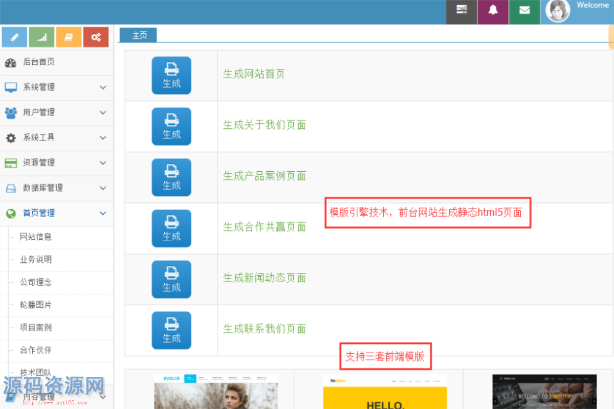 1.网站后台采用主流的 SSM 框架 jsp JSTL,网站前台采用freemaker静态化模版引擎生成html5