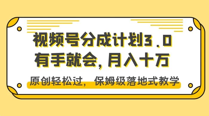 视频号分成计划 3.0,有手就会,月入十万,原创轻松过,保姆级落地式教学