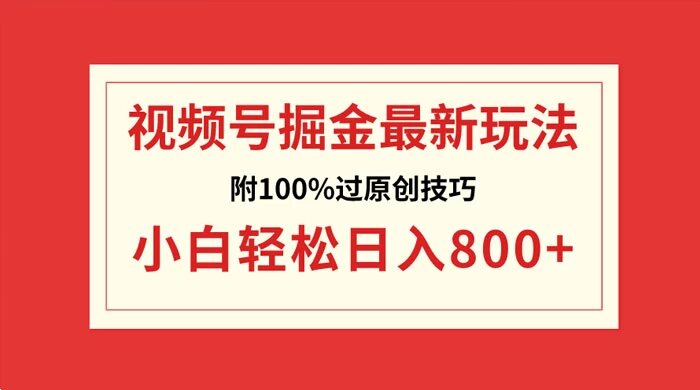 视频号掘金,小白轻松日入 800+,附 100% 过原创技巧