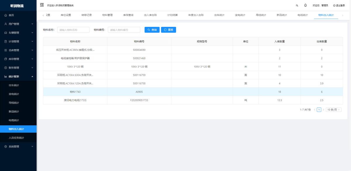 8.3年度出入台账可以查看指定年份,全年12个月哪些计划,哪些物料出库,入库,剩余数量等统计。