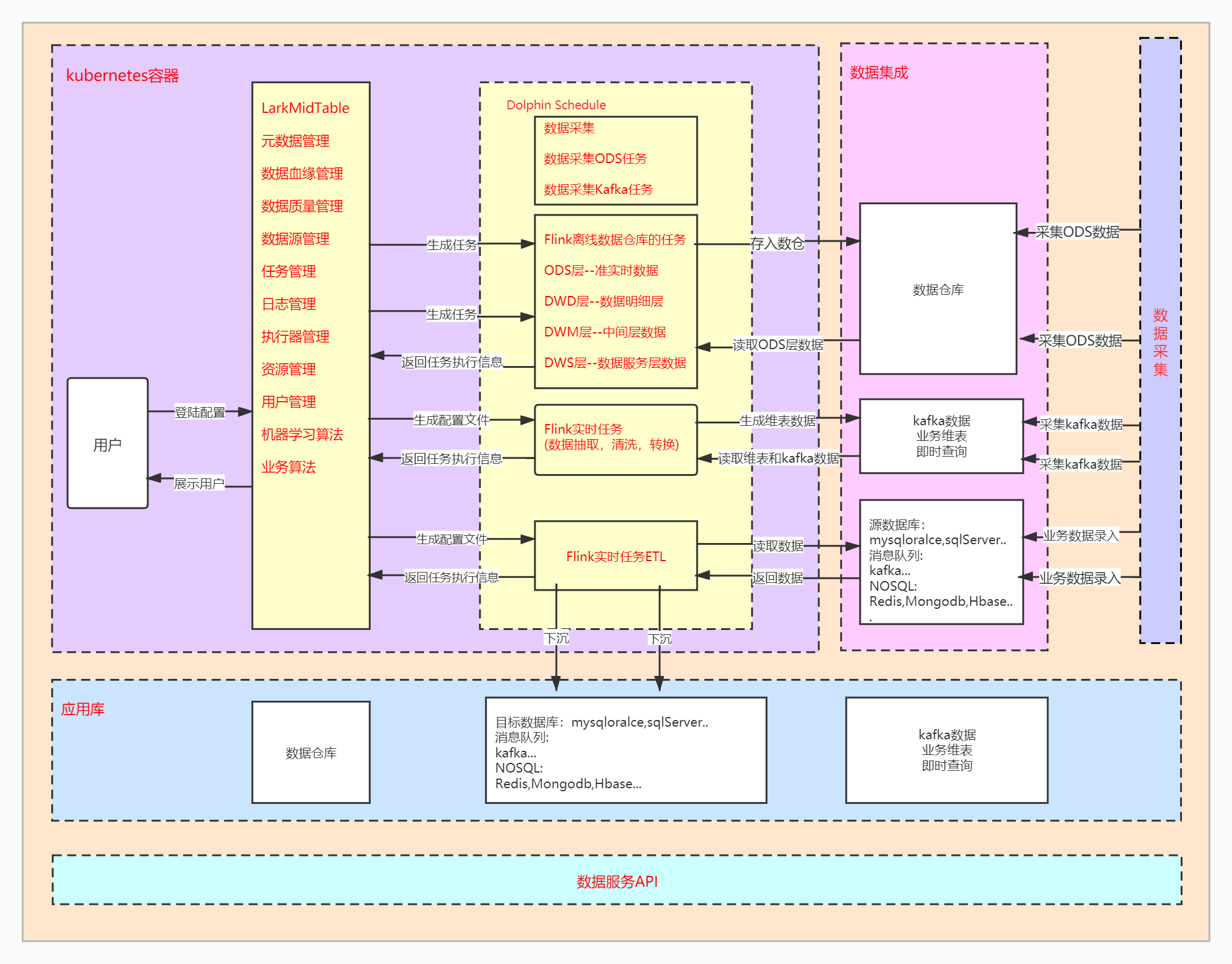 一站式数据中台,实现中台的基础建设,数据治理,数据开发,监控告警,数据服务,数据的可视化,实现高效赋能数据前台并提供数据服务的产品。
