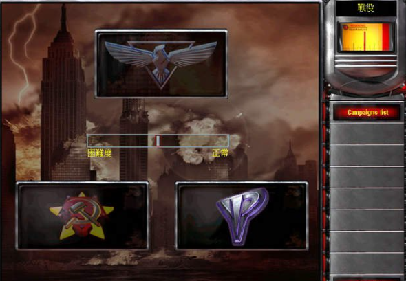 6、阵营设定为:6盟军阵营、5苏军阵营、4厄普西隆阵营(原来的尤里国家已经随着各国的胜利而消失,取而代之的是尤里重新组建的四个分部:总部守卫、天蝎组织、心灵军团、混乱部队)。