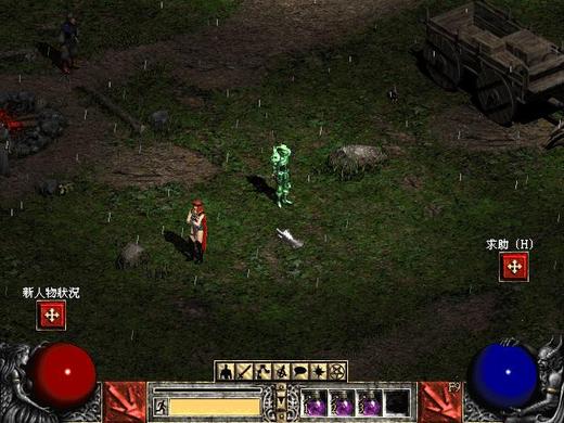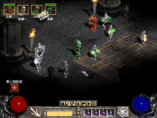《暗黑破坏神II》是一支动作RPG游戏, 但却不同于别类的动作游戏。首先,所有主角的动作操 控,以及界面的设定,全部均可由一支鼠标负责,简易的操控是游戏的第一个特色。第二个特色便是游戏的图象效果。游戏的画面是以六十度倾斜的方式表现出来( 想象不到的话,可以试试回忆Origin的创世纪系列), 因为游戏所有的场景全部是以即时的立体投影方式表现出来,因此游戏除了有明暗的效果外,人物的移动效果也极为流畅,魔法的表现亦是一绝。等级越高,能够施展的魔法自然越高,华丽的效果亦相应提,尤其是当你被人围困之时,当施展电系的魔法或是火系的魔法时,当中的效果只有亲身尝试,才可体会过中的妙处。游戏有数量极多的武器、防具、以及道具,从这些东西画面就可以看出美工制作的精心程度。