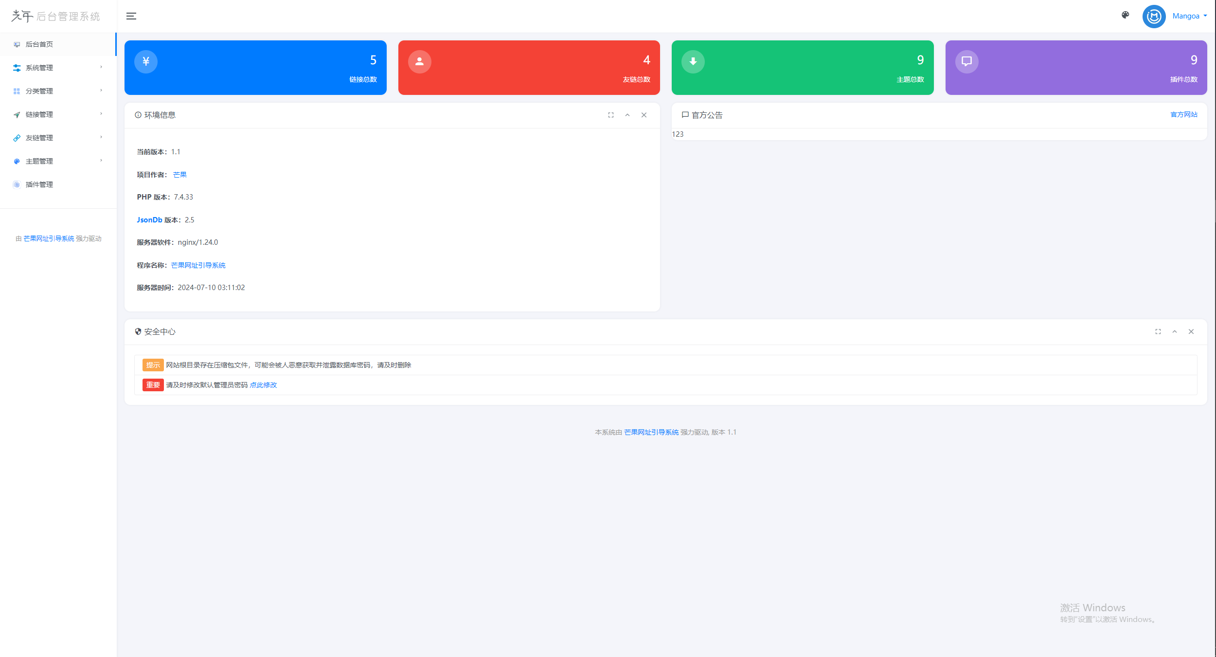 Mangoa-Nav/轻量级可扩展网址引导系统集成多套模板带后台无需授权免费完美可用