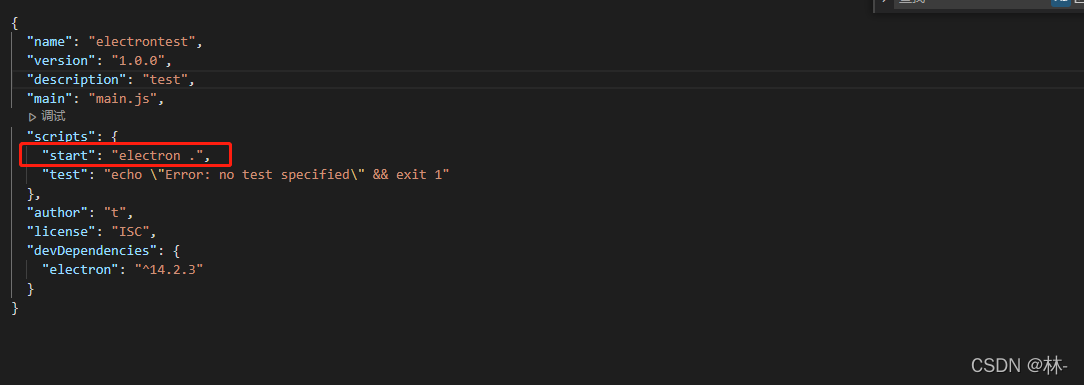 然后来到pakage.json里面新增一个start命令来运行程序,就会看见效果了
