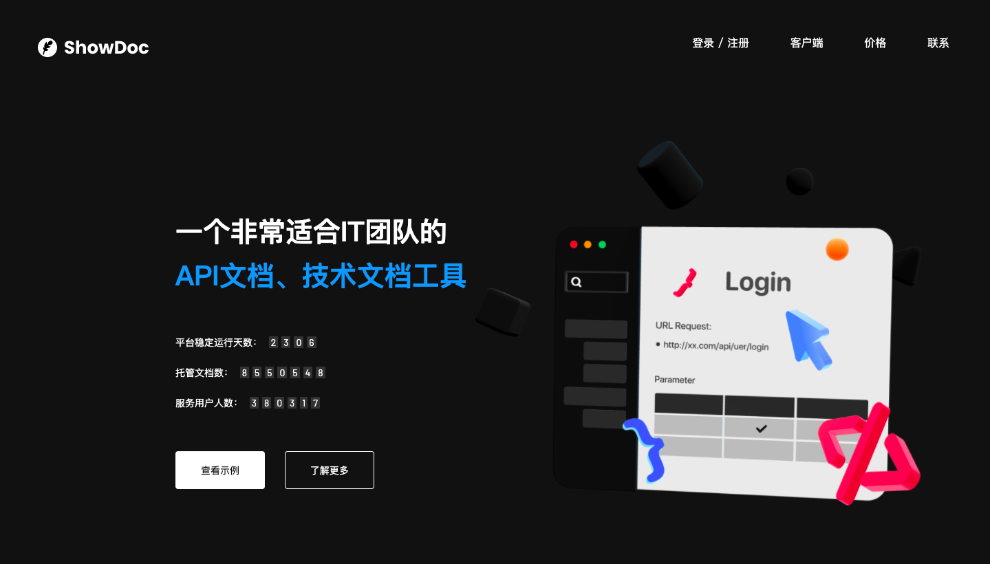 一、项目简介一个非常适合IT团队的在线API文档、技术文档工具。通过showdoc,你可以方便地使用markdown语法来书写出美观的API文档、数据字典文档、技术文档、在线excel文档等等。如果不想编辑markdown文档,你还可以利用showdoc的自动化能力,从程序注释中自动生成API文档,或者从搭配的RunApi客户端(类似postman的api调试工具)中一边调试接口、一边自动生成文档。通过分配项目成员和团队成员,你可以很方便地进行项目文档的权限管理和团队协作,也可以分享文档出去给朋友查看。ShowDoc还支持多平台客户端,有win客户端、mac客户端、ios、android等,更方便跨平台使用。目前超过100000+的互联网团队正在使用showdoc,包括知名公司内部的一些团队,比如腾讯、华为、百度、京东、字节跳动等等。 二、功能概述它可以用来做什么- API文档 随着移动互联网的发展,BaaS(后端即服务)越来越流行。服务端提供API,APP端或者网页前端便可方便调用数据。用ShowDoc可以非常方便快速地编写出美观的API文档。